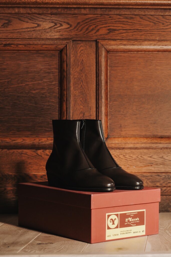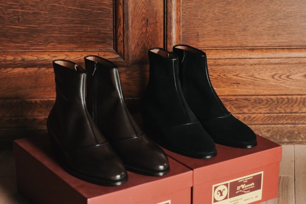 ヴィンテージが放つ重厚な存在感とは異なり、レユッカスの靴には現代的な軽やかさと洗練された空気があります。