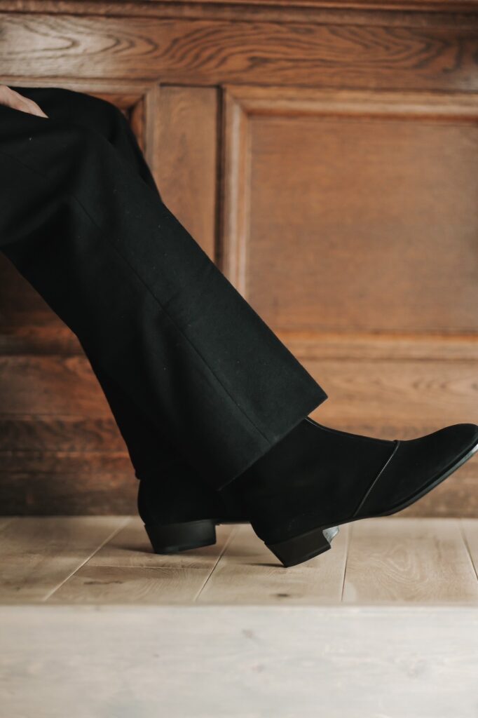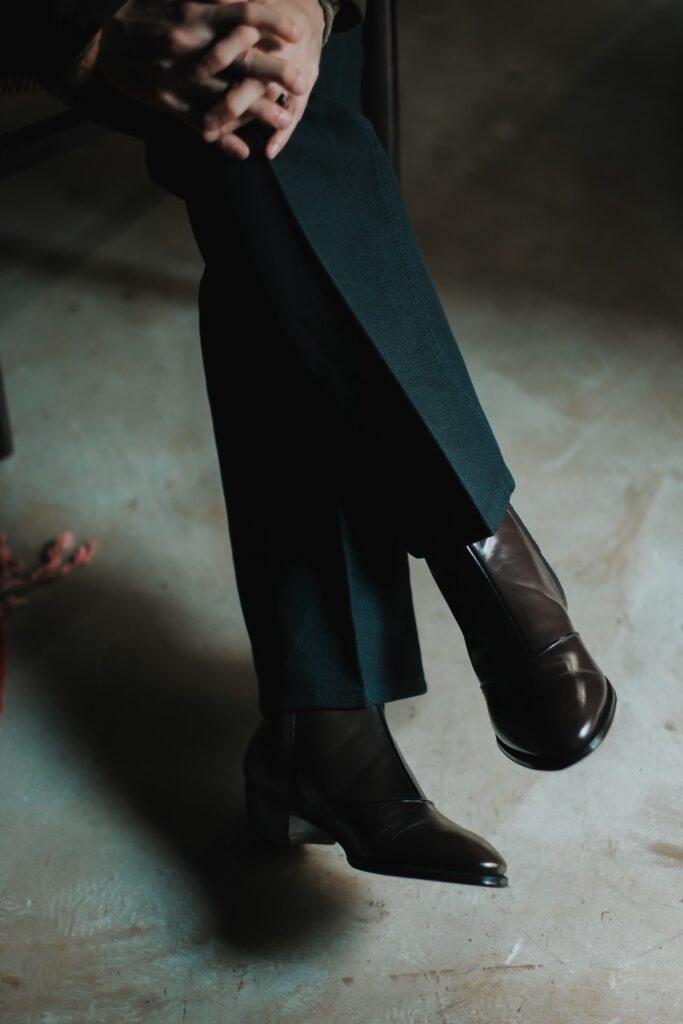 マクシズでは、定番のヒールブーツをベースに、ヒール高とラストをわずかに調整し、よりバランスの取れたシルエットへと仕上げました。