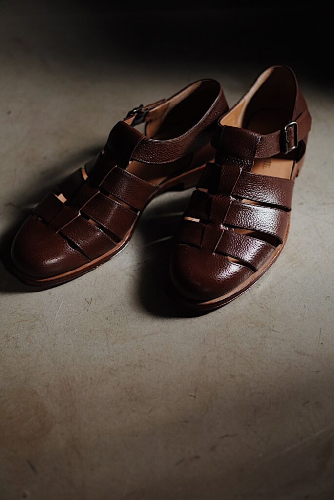 彼らの特徴は、世界各地の伝統的なフットウェアをリサーチし、その構造や意匠を細かく分析したうえで現代の木型と製法に再構築するサンプリング能力の高さです。