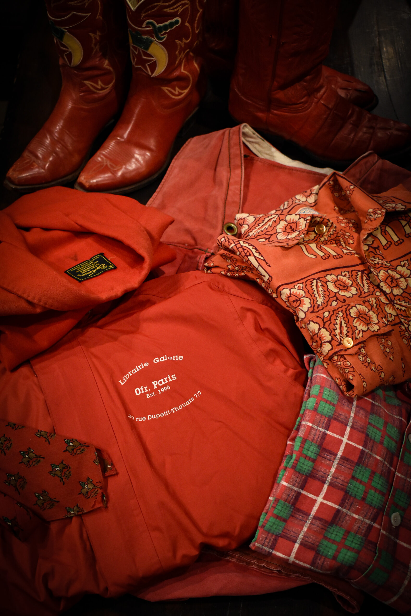 店内をぐるりと見渡すと、赤い洋服、赤い靴が目に入る。