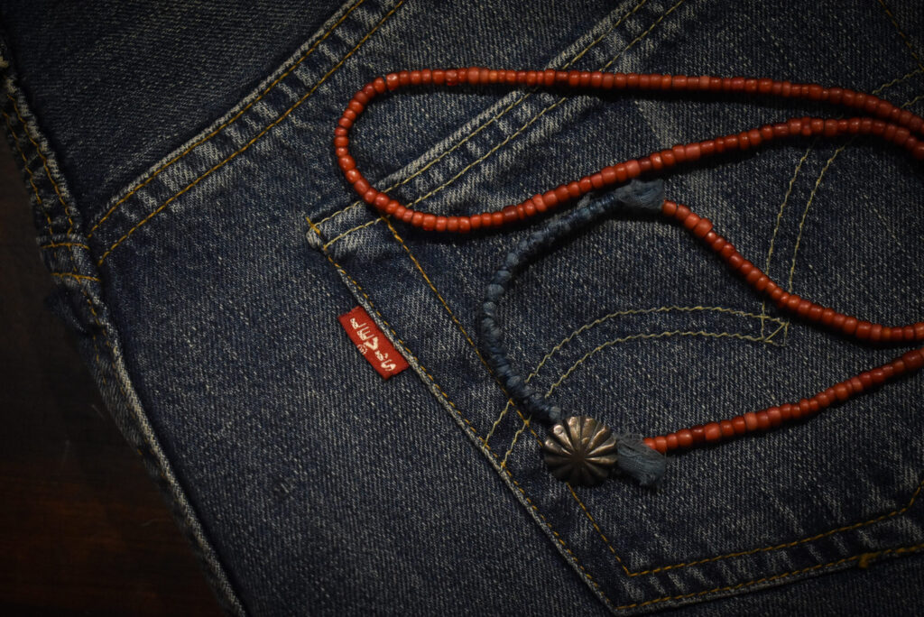 あるいは、タグやステッチにだけ赤。