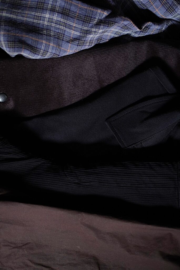 ブランドの根には、英国のクラフトマンや職人、そしてミルへの深い敬意が息づいています。伝統的な製法や天然素材を軸にしながら、そこに現代の感覚を確かな手つきで重ねていく。その態度は服の佇まいにまっすぐ現れています。シャツやパンツ、フードコートなどクラシックなルーツを持つアイテムたちは、古い意匠のいいところを丁寧にすくい取りつつ、今という時代に着る意味をしっかりと考えられています。着るほどに体へ馴染む心地よさは、その誠実さの証のようです。